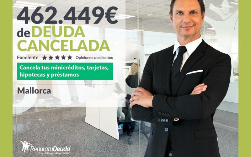 Repara tu Deuda Abogados, despacho de abogados líder en España en la tramitación de la Ley de Segunda Oportunidad, ha logrado tres nuevas cancelaciones de deuda en Mallorca (Baleares). Mediante la gestión de Repara tu Deuda Abogados, se han producido tres casos de personas que han obtenido la Exoneración del Pasivo Insatisfecho (EPI) que ascendía a 462.449 euros.